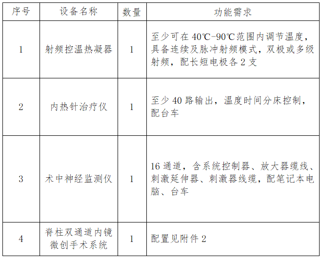 根据成都体育学院附属体育医院采购计划, 现拟对射频控温热凝器等医疗设备开展市场调研,具体如下: